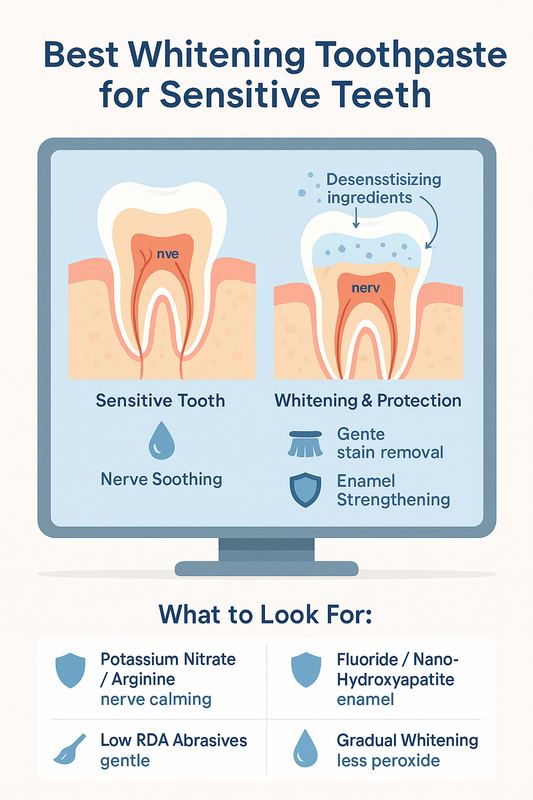 AI Overview: The best whitening for sensitive teeth usually combines low-abrasion stain removal with desensitizers and enamel-strengthening ingredients. Results are gradual, gentler, and safer for daily use.