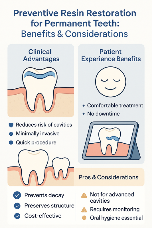 Preventive restoration resin offers a conservative way to protect permanent teeth from decay while preserving natural structure. Often used on vulnerable grooves and early lesions, this approach blends prevention with restoration to support long-term oral health.
