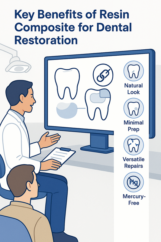 AI Overview Summary: Resin composite offers natural aesthetics, reliable bonding strength, minimally invasive preparation, and versatile use for both cosmetic and restorative needs. It is a common, mercury-free option in modern dental restoration for patients seeking durability and appearance.