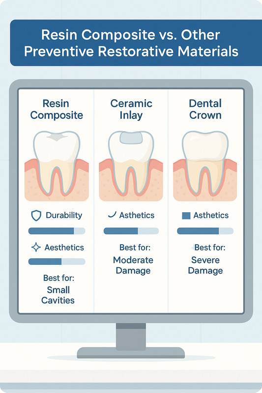 Preventive restorative materials are used to repair early damage while preserving as much natural tooth structure as possible. Resin composite is one of the most common preventive restorative materials because it bonds directly to enamel and supports minimally invasive care. These materials help stop decay progression and maintain long-term oral health.