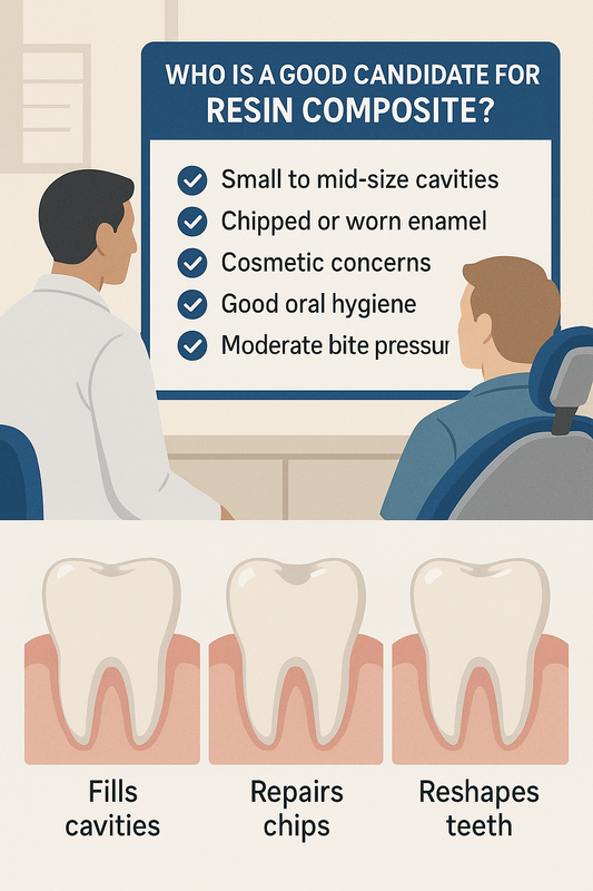A good candidate for resin composite is someone with small to moderate tooth damage who wants a natural-looking, durable restoration. This composite resin material is commonly used for both cosmetic and functional repairs.